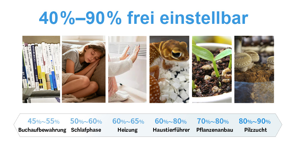 Erreicht schnell die gewünschte Luftfeuchtigkeit und stellt die Feuchtigkeit effektiv wieder her.